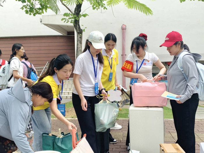 迎新期间,党支部在武鸣校区学院迎新点专门设立“先锋党员+外语”志愿服务区,为学生及家长提供周到的咨询与帮助。志愿者们主动引导报到、协助搬运行李、耐心解答问题,以实际行动践行全心全意为人民服务的根本宗旨。