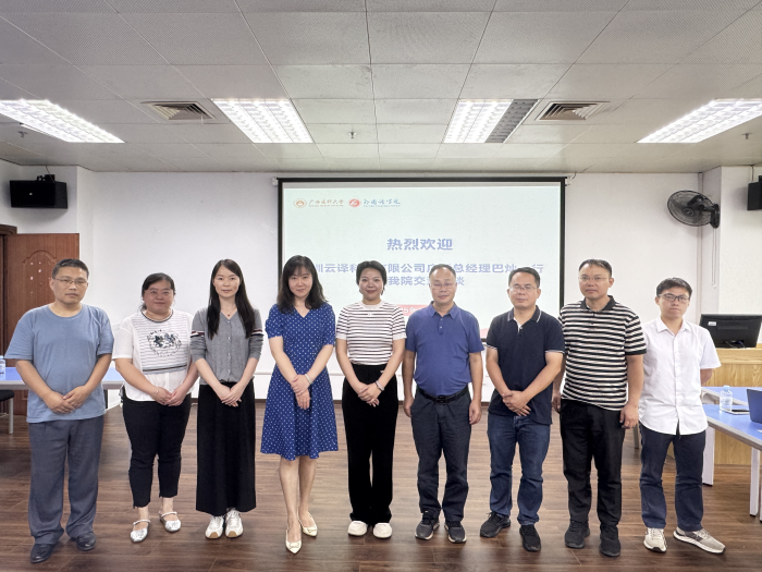 2025年6月12日下午,深圳云译科技有限公司广西总经理巴灿一行到学院交流座谈。桃子视频 党委书记韦建辉、副院长吕晓敏、党委副书记黄万获及相关科室负责人参加了交流活动。