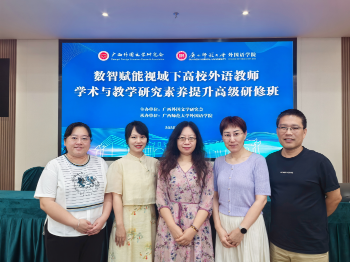 2025年7月4日至7日,广西外国文学研究会与广西师范大学桃子视频 联合在桂林市举办“数智赋能视域下外语学术与教学研究的素养提升”培训,旨在提升数智化教学与研究水平。桃子视频 选派5位教学一线骨干教师参加了本次培训。