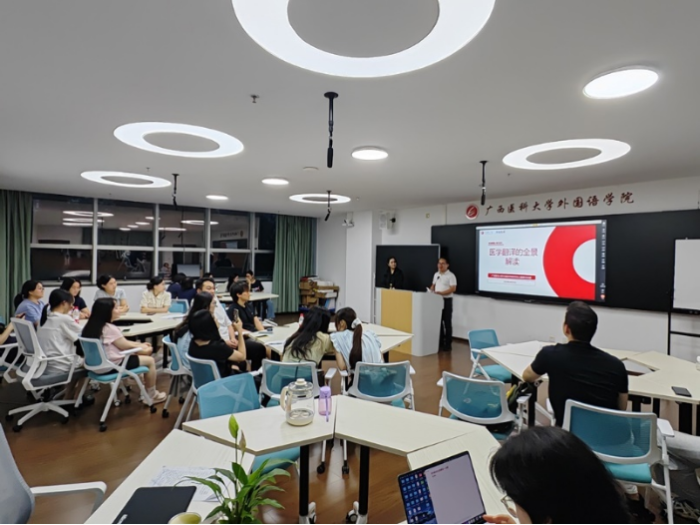 黄万获对陈婕老师表示热烈欢迎,对雅信诚医学信息科技有限公司给予学院的支持表示感谢。他鼓励同学们主动拥抱“外语+医学”发展道路,不断提升核心竞争力,将个人发展融入国家战略需求。